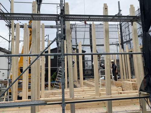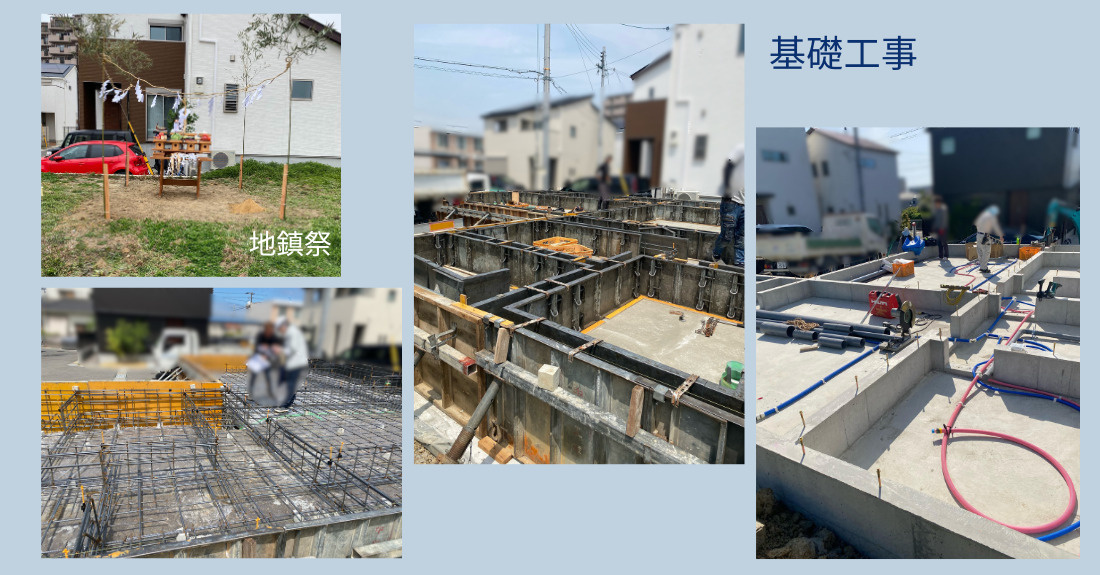 いよいよ工事が始まりました。施主様のご希望もあり、地鎮祭を行いました。最近は地鎮祭をされない施主様も増えているのだとか・・・。基礎工事が終われば、棟上げです!棟上げは施主様の予定と天気予報をにらめっこして無事に予定通り行うことができました。