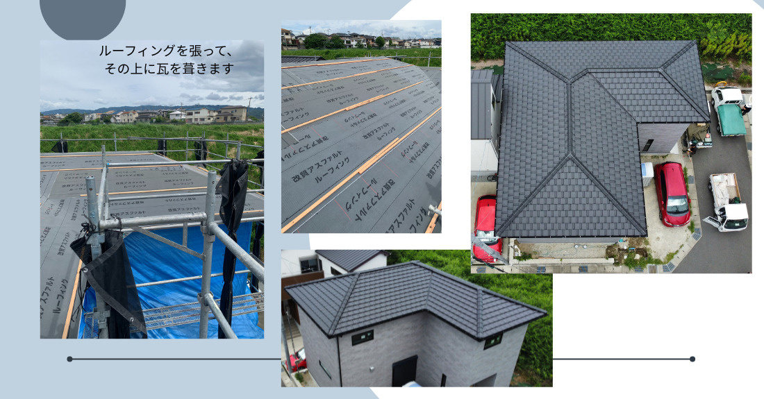 屋根は家を守る大事なものです。雨風から守り、見た目も美しく、かつ耐久性もある陶器瓦を使い、屋根を仕上げております。